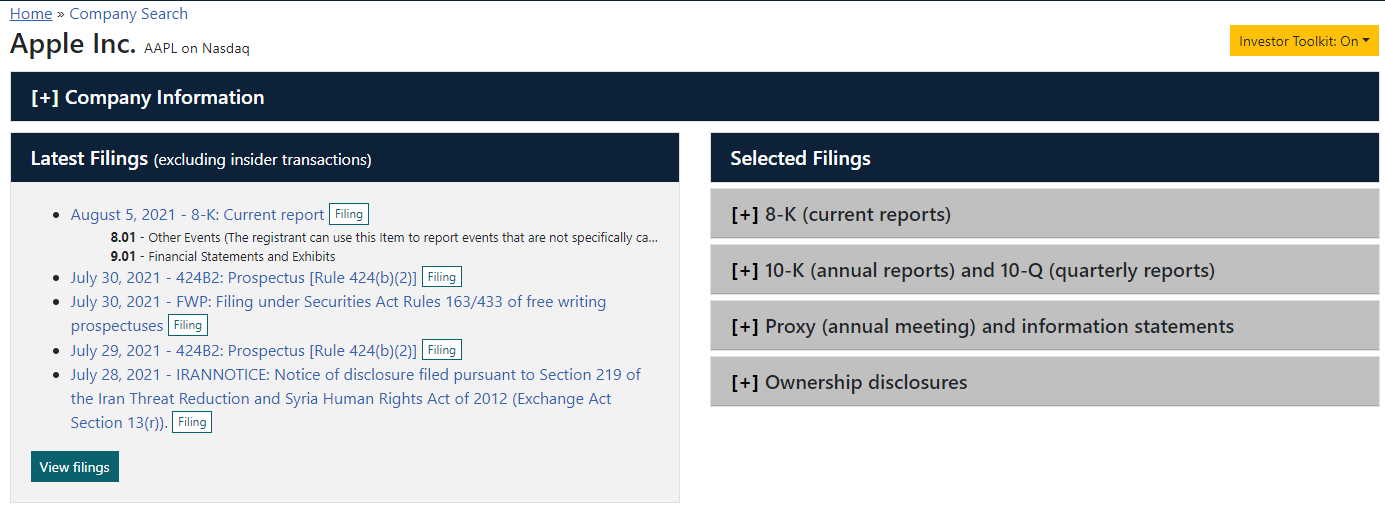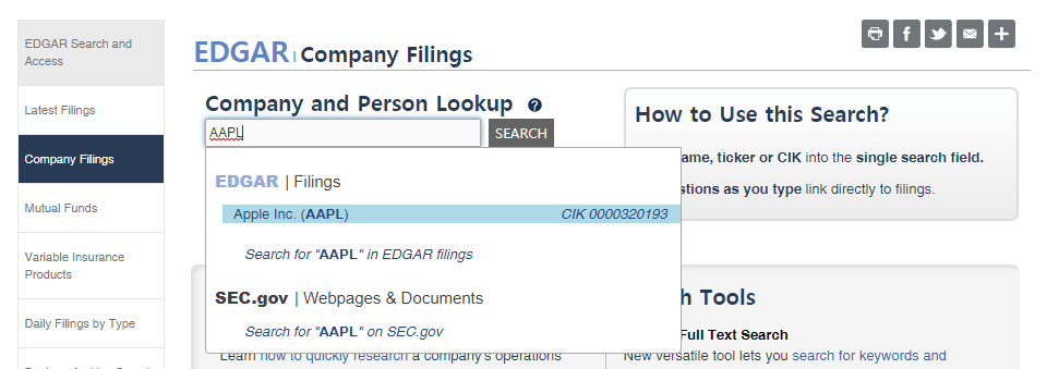 SEC에선 단순히 손익계산서나 대차대조표같은 수치 외에도, 기업 관련 문서나 공시, 사업에 대한 설명, 계획 등 기업에서 공식적으로 제공하는 모든 정보를 확인할 수 있습니다.