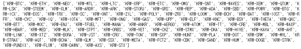 tkrs = pyupbit.get_tickers(fiat='KRW')