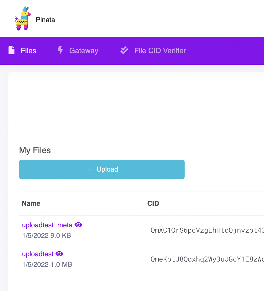 이제 json 파일도 완성되었으니, 동일하게 pinata에 업로드해줍니다.