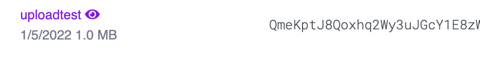 그럼 아래처럼 업로드된 폴더와 고유 주소(Qm~~~)가 나옵니다.