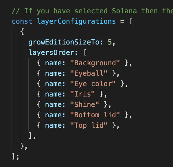 growEditionSizeTo는 몇 개의 NFT를 만들지를 정해줍니다. 이미지에서는 5개의 NFT를 만든다고 적혀있네요.