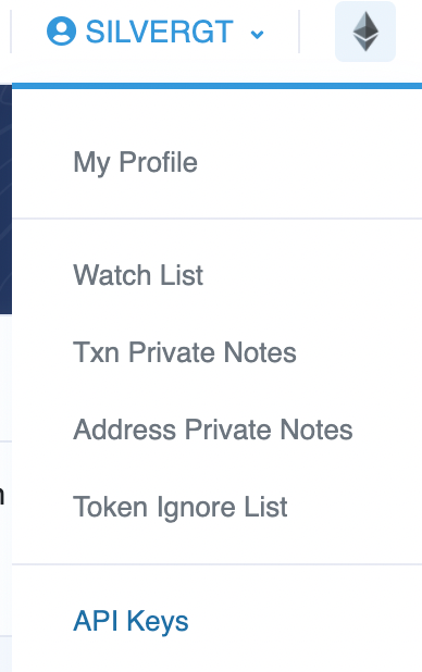 Etherscan.io에 로그인 후, 내 프로필에서 API Keys 클릭 - API Key를 발급받습니다.