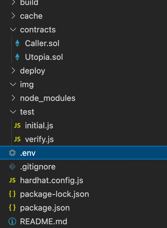 4. hardhat 폴더에 아래 그림처럼 .env 파일을 생성합니다.