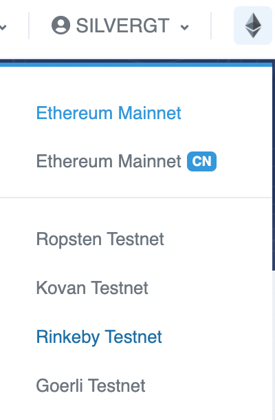 먼저 Etherscan에서 내 프로필 오른쪽 이더리움 로고에 마우스를 올려, Rinkeby Testnet을 선택합니다.