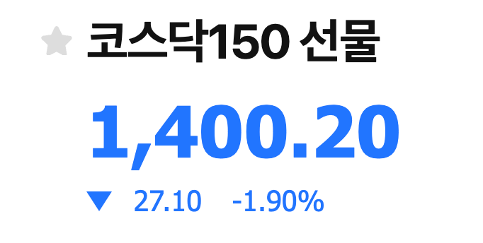 먼저 오늘의 코스닥150 선물 가격을 확인해보면, 1400.2pt를 찍었네요. 코스닥150지수 자체는 소수점 두 번째 자리까지 계산되지만, 코스닥150 선물의 호가단위는 0.1pt 단위로 이뤄집니다.