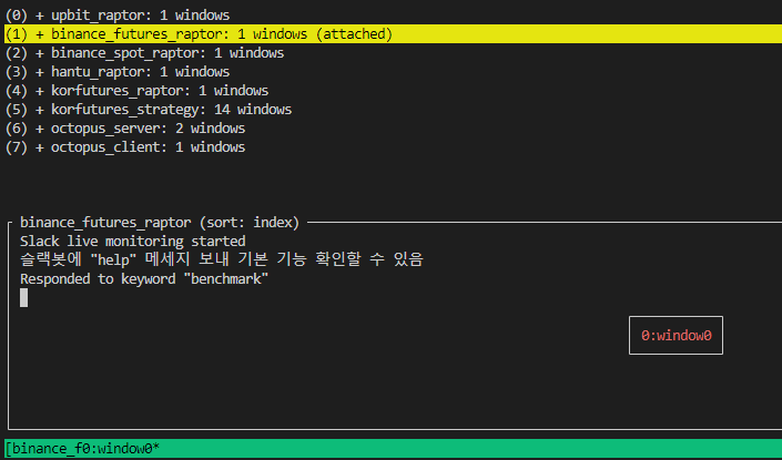 마지막으로, 전략 코드를 담고있을 터미널 프로그램인 tmux를 구현합니다.